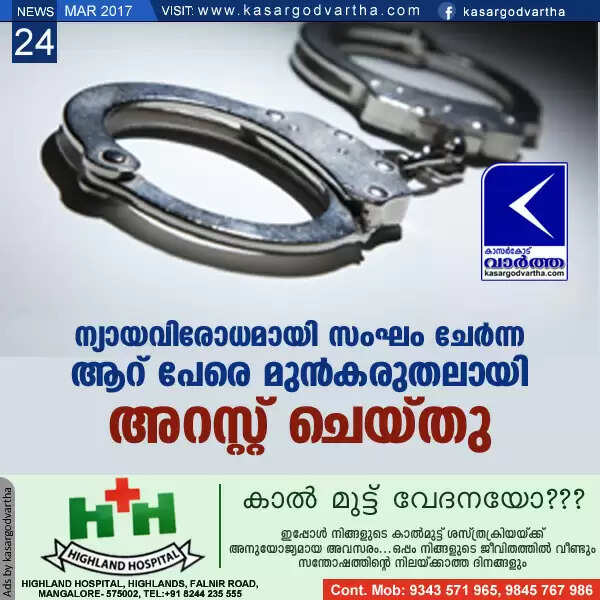 ന്യായവിരോധമായി സംഘം ചേര്‍ന്ന ആറ് പേരെ മുന്‍കരുതലായി അറസ്റ്റ് ചെയ്തു