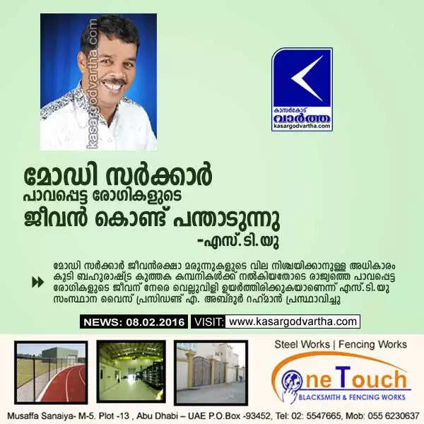 മോഡി സര്ക്കാര് പാവപ്പെട്ട രോഗികളുടെ ജീവന് കൊണ്ട് പന്താടുന്നു: എസ്.ടി.യു