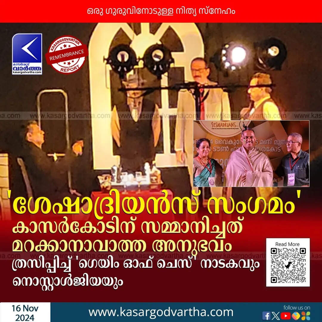 Remembrance | 'ശേഷാദ്രിയൻസ് സംഗമം' കാസർകോടിന് സമ്മാനിച്ചത് മറക്കാനാവാത്ത അനുഭവം; ത്രസിപ്പിച്ച് 'ഗെയിം ഓഫ് ചെസ്' നാടകവും നൊസ്റ്റാൾജിയയും