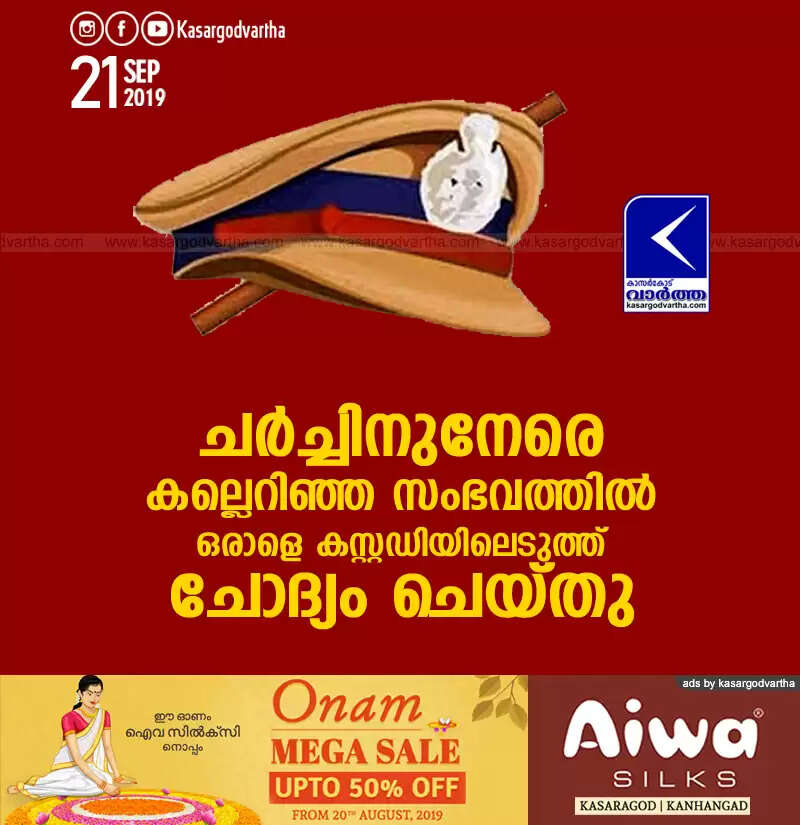 ചര്ച്ചിനുനേരെ കല്ലെറിഞ്ഞ സംഭവത്തില് ഒരാളെ കസ്റ്റഡിയിലെടുത്ത് ചോദ്യം ചെയ്തു