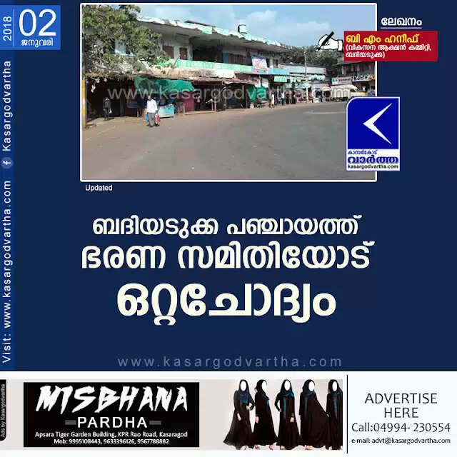 Keywords: Kerala, kasaragod, Badiyadukka, news, Panchayath, Development, Project, Question, A Question For Badiyadukka Panchayath Administrators