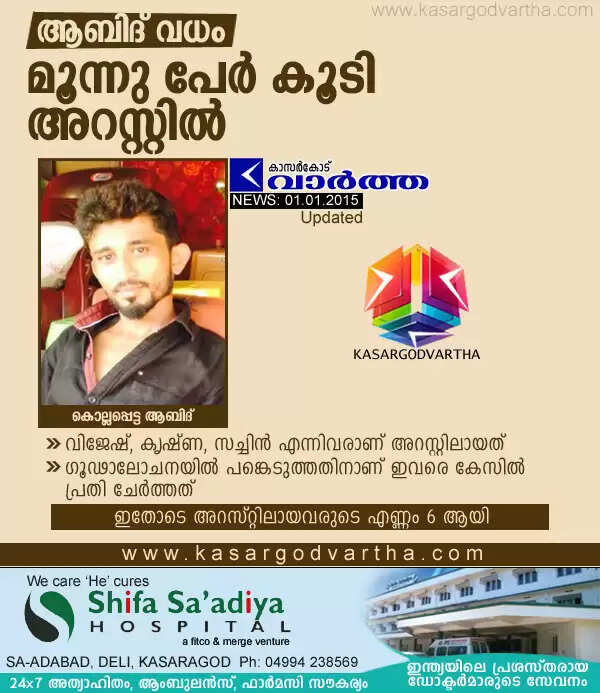 ആബിദ് വധം: ഗൂഢാലോചനയില് പങ്കെടുത്ത 3 പ്രതികള് കൂടി അറസ്റ്റില്