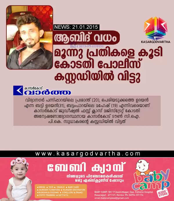 Keywords:  Kasaragod, Kerala, Murder-case, Murder, custody, Police, court, Thalangara, Accuse, Abid murder case: 3 accused in police custody.