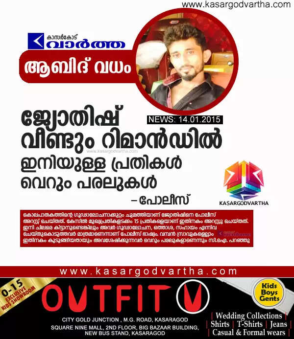 Keywords:  Kasaragod, Kerala, Police, Remand, Accuse, Murder, Murder-case, Abid murder: Jyothish remanded.