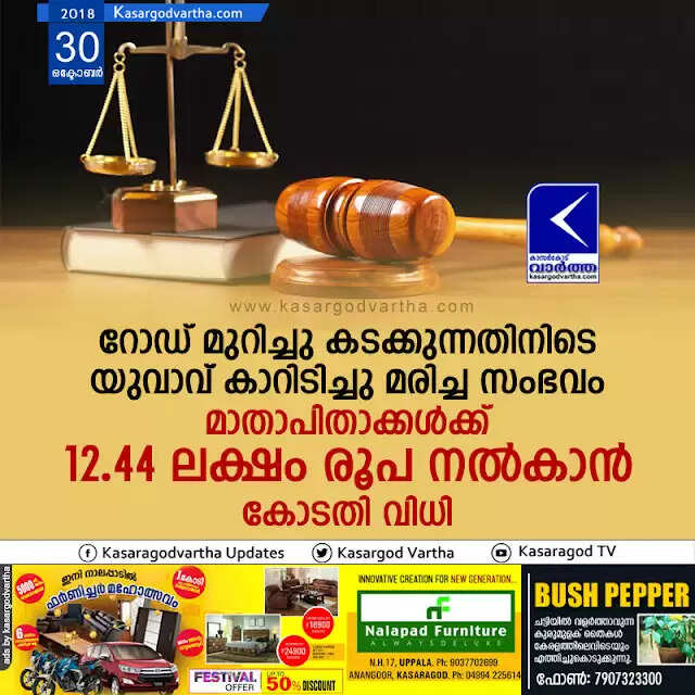 Keywords: Kasaragod, News, Death, Accident, Accidental-Death, Court, Court order, Accident death; Court order to give compensation for Parents