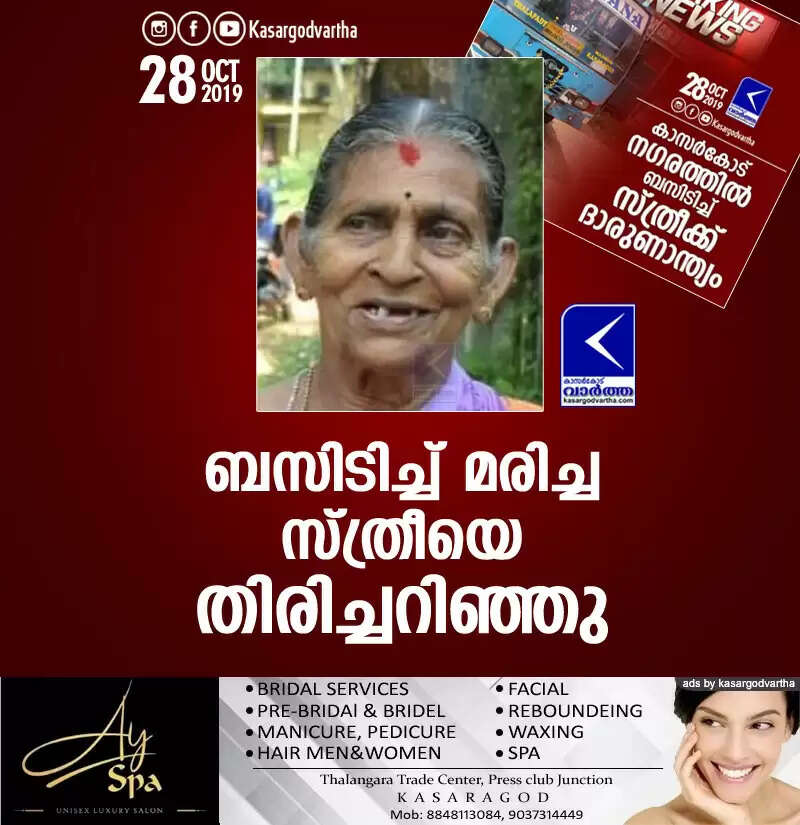 ബസിടിച്ച് മരിച്ച സ്ത്രീയെ തിരിച്ചറിഞ്ഞു