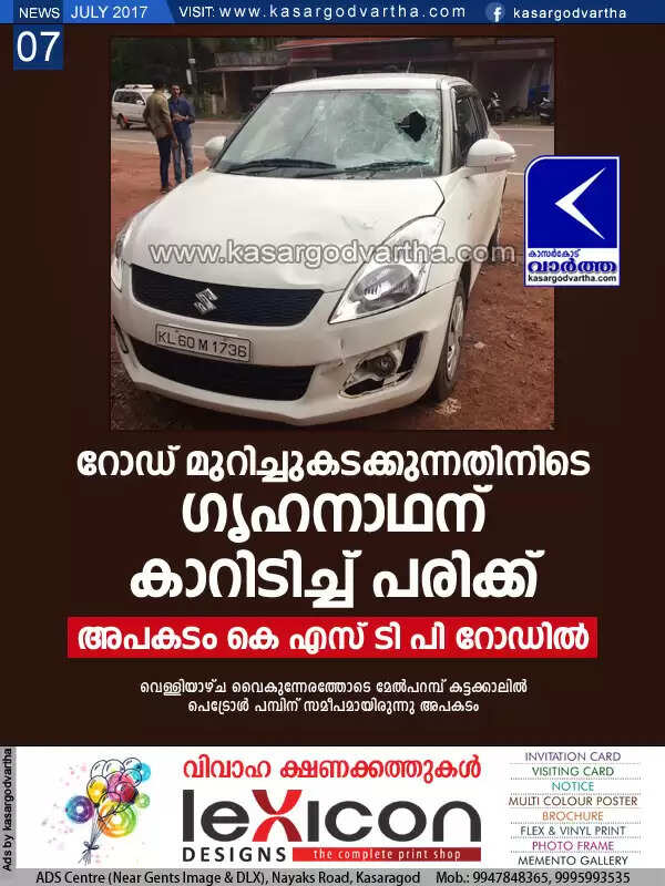 റോഡ് മുറിച്ചുകടക്കുന്നതിനിടെ ഗൃഹനാഥന് കാറിടിച്ച് പരിക്ക്; അപകടം കെ എസ് ടി പി റോഡില്