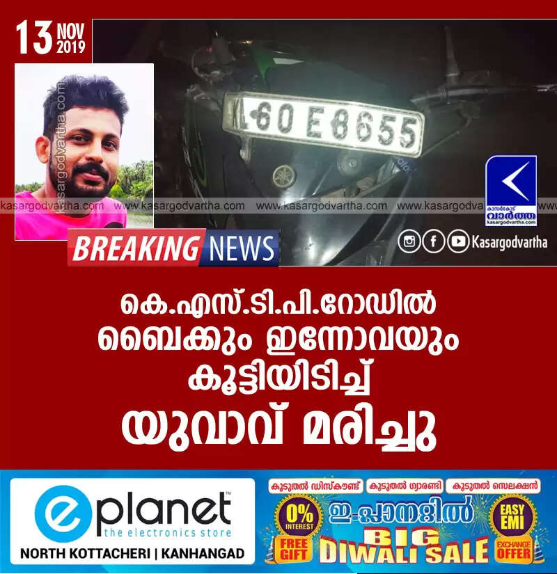 കെ.എസ്.ടി.പി.റോഡില്‍ ബൈക്കും ഇന്നോവയും കൂട്ടിയിടിച്ച് യുവാവ് മരിച്ചു