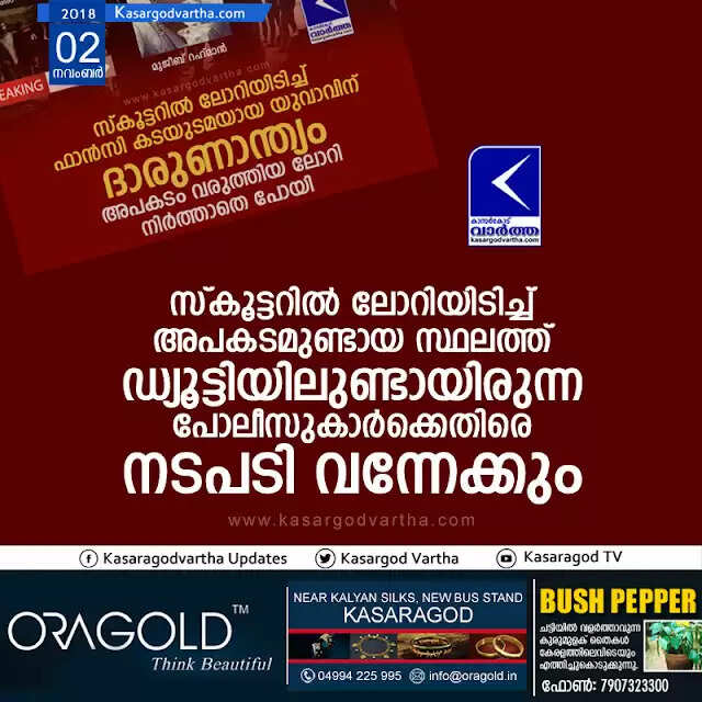 Keywords: Accident; May take action against police officer, Kasaragod, News, Accidental Death, Police