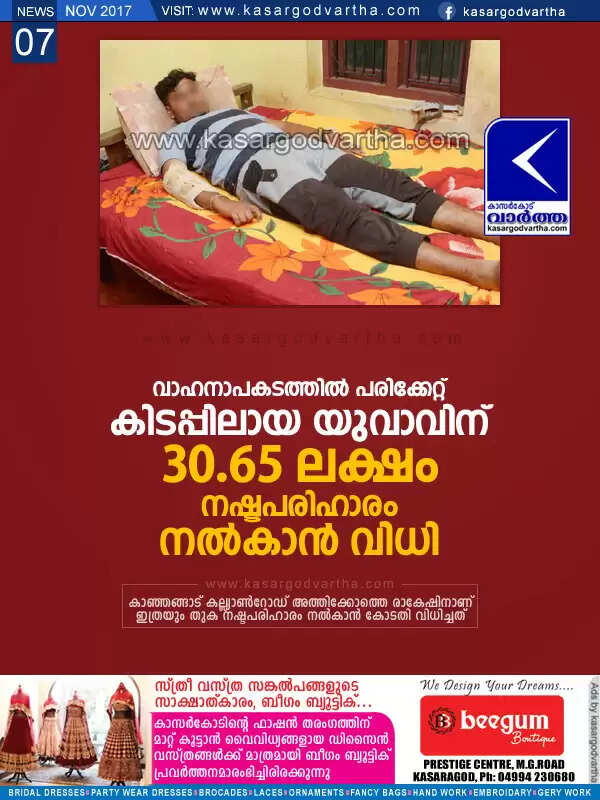 Keywords : Kanhangad, Kasaragod, Court, Youth, Accident, News, Compensation, Rakesh.