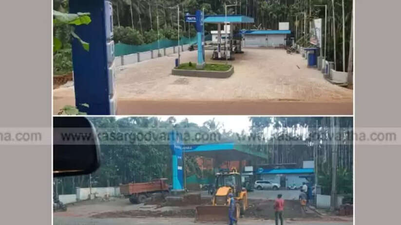 കേരള–കർണാടക അതിർത്തിയിൽ പാതയോരം കയ്യേറി പെട്രോൾ പമ്പ് ഉടമ പാകിയ ഇൻറർലോക്ക് നിലം പിഡബ്ല്യുഡി ഉദ്യോഗസ്ഥർ ഇടപെട്ട് പൊളിച്ചുനീക്കി