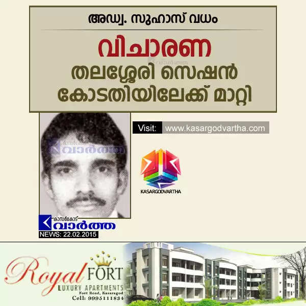 അഡ്വ. സുഹാസ് വധം: വിചാരണ തലശ്ശേരി സെഷന്സ് കോടതിയിലേക്ക് മാറ്റി