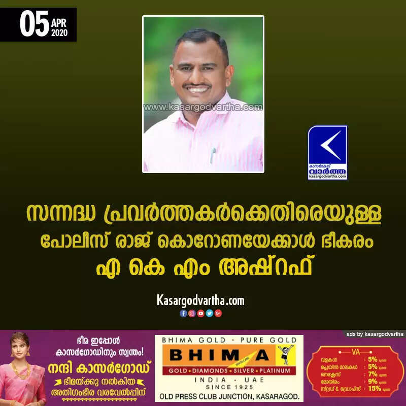സന്നദ്ധ പ്രവര്ത്തകര്ക്കെതിരെയുള്ള പോലീസ് രാജ് കൊറോണയേക്കാള് ഭീകരം: എ കെ എം അഷ്റഫ്