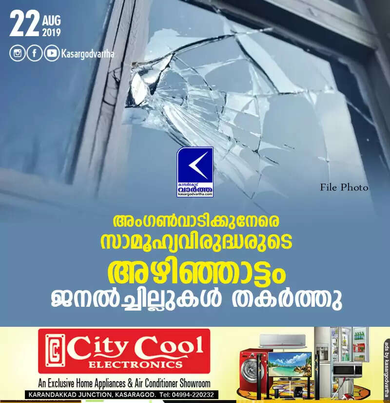 Keywords: Kasaragod, Kerala, news, Anti socials attack against Anganvady