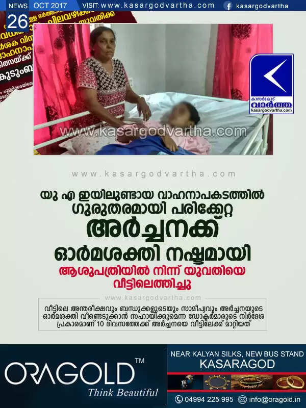 യു എ ഇയിലുണ്ടായ വാഹനാപകടത്തില് ഗുരുതരമായി പരിക്കേറ്റ അര്ച്ചനക്ക് ഓര്മശക്തി നഷ്ടമായി; ആശുപത്രിയില് നിന്ന് യുവതിയെ വീട്ടിലെത്തിച്ചു