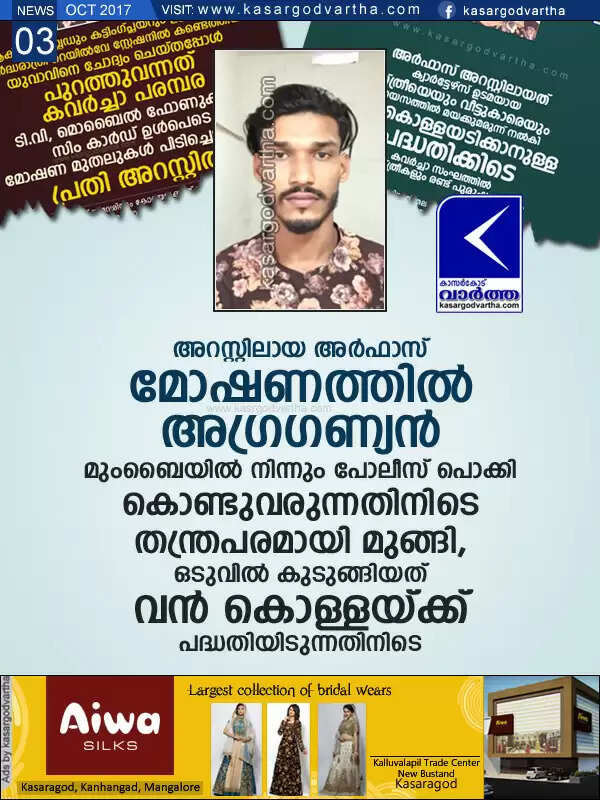 അറസ്റ്റിലായ അര്ഫാസ് മോഷണത്തില് അഗ്രഗണ്യന്; മുംബൈയില് നിന്നും പോലീസ് പൊക്കി കൊണ്ടുവരുന്നതിനിടെ തന്ത്രപരമായി മുങ്ങി, ഒടുവില് കുടുങ്ങിയത് വന് കൊള്ളയ്ക്ക് പദ്ധതിയിടുന്നതിനിടെ