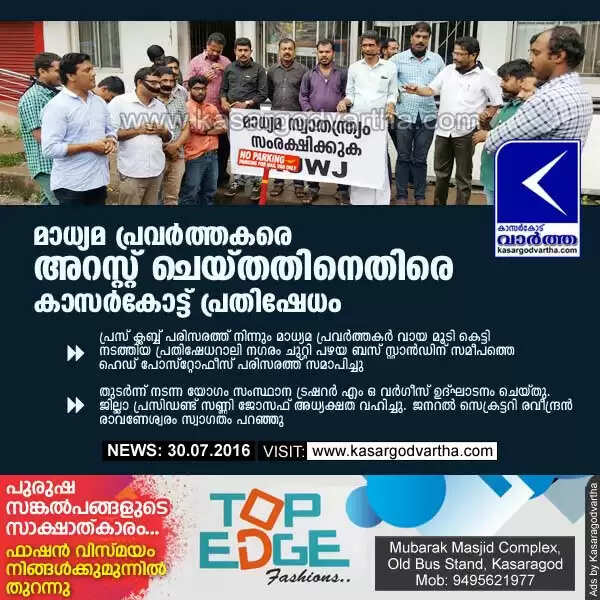 മാധ്യമ പ്രവര്ത്തകരെ അറസ്റ്റ് ചെയ്തതിനെതിരെ കാസര്കോട്ട് പ്രതിഷേധം