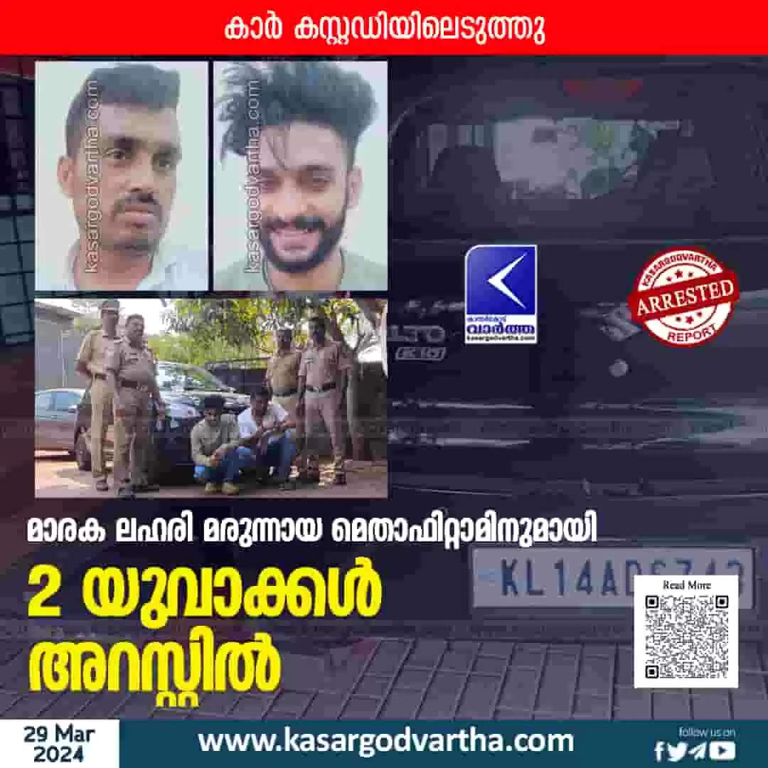 Keywords: News, Top-Headlines, Kasargod, Kasaragod-News, Kerala, Kerala-News, Two arrested with methamphetamine.