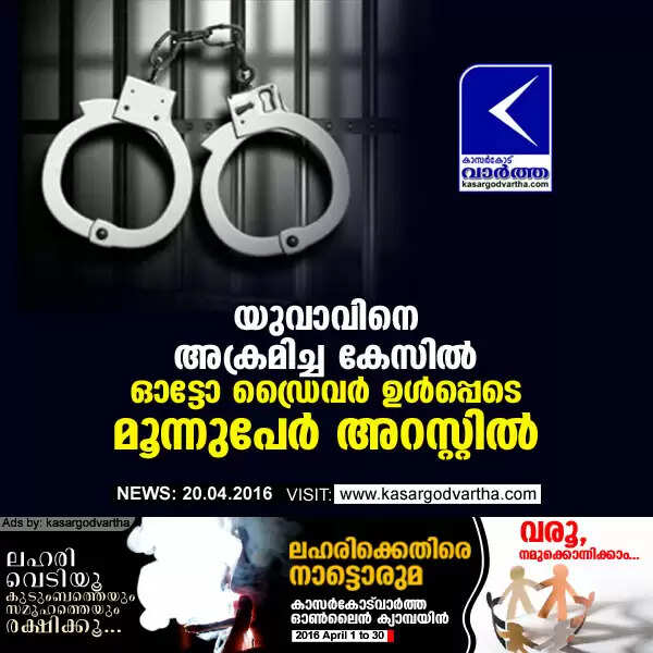 യുവാവിനെ അക്രമിച്ച കേസില് ഓട്ടോ ഡ്രൈവര് ഉള്പ്പെടെ മൂന്നുപേര് അറസ്റ്റില്
