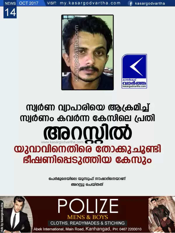 സ്വര്ണ വ്യാപാരിയെ ആക്രമിച്ച് സ്വര്ണം കവര്ന്ന കേസിലെ പ്രതി അറസ്റ്റില്; യുവാവിനെതിരെ തോക്കുചൂണ്ടി ഭീഷണിപ്പെടുത്തിയ കേസും
