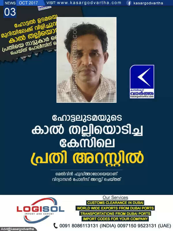 ഹോട്ടലുടമയുടെ കാല് തല്ലിയൊടിച്ച കേസിലെ പ്രതി അറസ്റ്റില്
