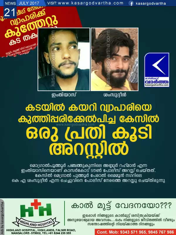 കടയില് കയറി വ്യാപാരിയെ കുത്തിപ്പരിക്കേല്പിച്ച കേസില് ഒരു പ്രതി കൂടി അറസ്റ്റില്