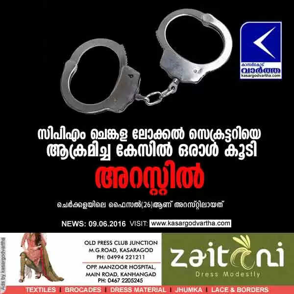 സി പി എം ചെങ്കള ലോക്കല് സെക്രട്ടറിയെ ആക്രമിച്ച കേസില് ഒരാള് കൂടി അറസ്റ്റില്