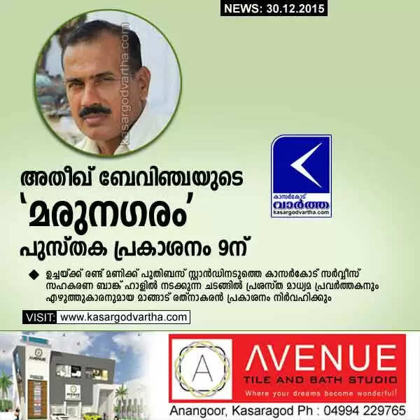 അതീഖ് ബേവിഞ്ചയുടെ 'മരുനഗരം' പുസ്തക പ്രകാശനം 9ന്