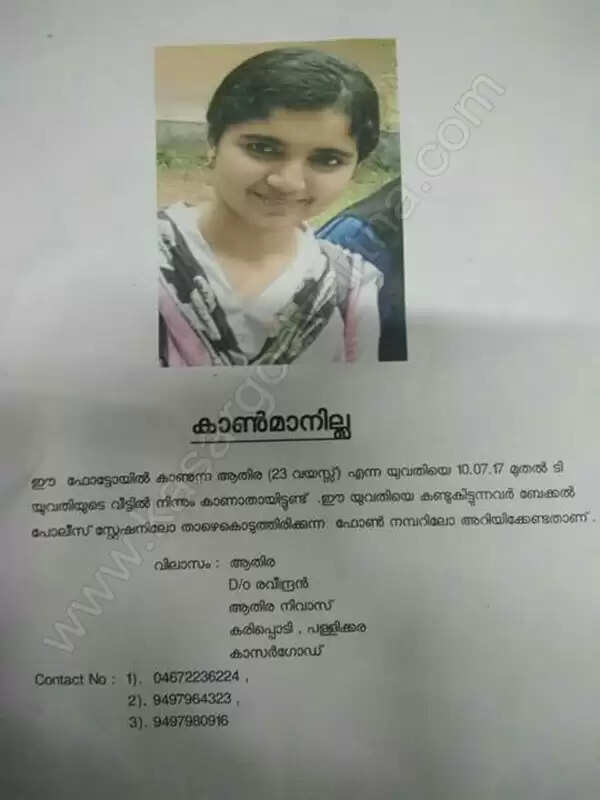 ആതിരയുടെ തിരോധാനം: പോലീസ് നോട്ടീസ് പുറത്തിറക്കി