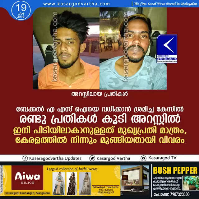 ബേക്കല്‍ എ എസ് ഐയെ വധിക്കാന്‍ ശ്രമിച്ച കേസില്‍ രണ്ടു പ്രതികള്‍ കൂടി അറസ്റ്റില്‍, ഇനി പിടിയിലാകാനുള്ളത് മുഖ്യപ്രതി മാത്രം, കേരളത്തില്‍ നിന്നും മുങ്ങിയതായി വിവരം