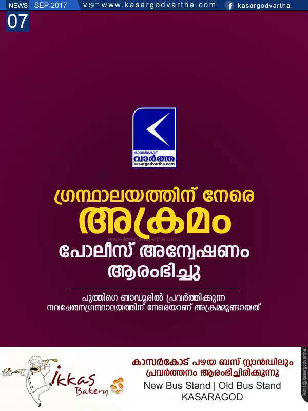 കഴിഞ്ഞ ദിവസമാണ് സംഭവം നടന്നത്. ഗ്രന്ഥാലയം സെക്രട്ടറി പൃഥ്വിരാജിന്റെ പരാതിയില്‍ ബദിയടുക്ക പോലീസ് കേസെടുത്ത് അന്വേഷണം ആരംഭിച്ചു.