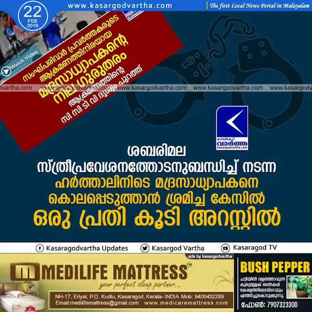 Keywords:  Manjeshwaram, Attack, Murder-attempt, accused, arrest, kasaragod, Harthal, Attack against Madrasa Teacher; One more arrested
