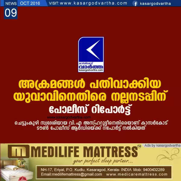 Keywords: Kasaragod, Assault, Youth, Police, Report, chettumkuzhi, RDO, Issues, Create, Attack case: Police report against youth.