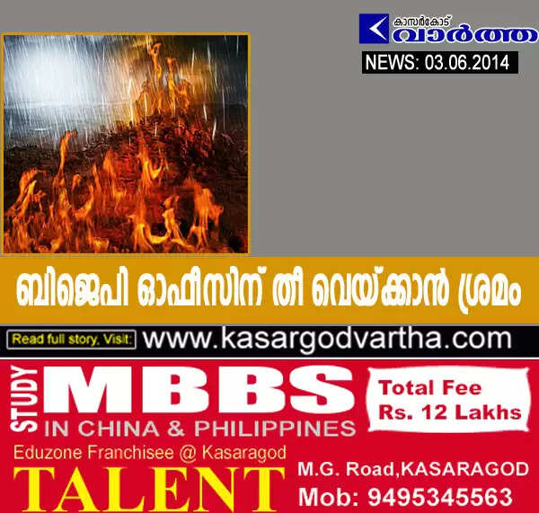 ബിജെപി ഓഫീസിന് തീ വെയ്ക്കാന് ശ്രമം