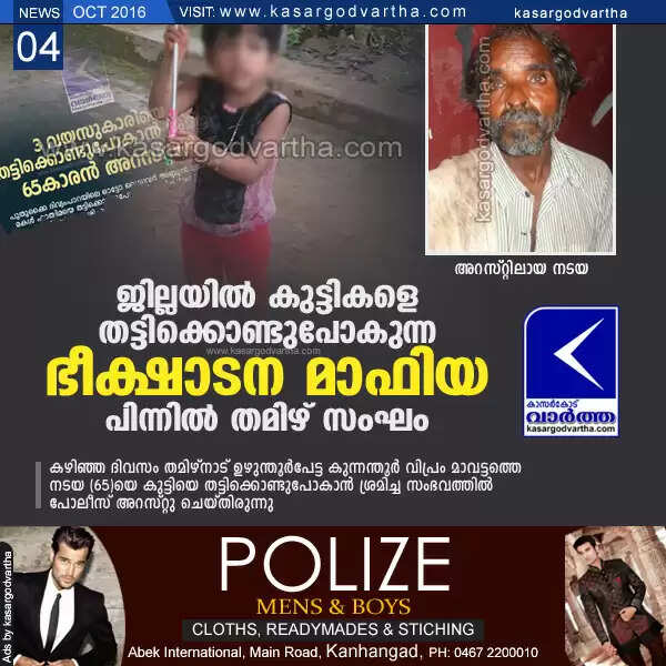 Keywords:  Kasaragod, Kerala, Kanhangad, Police, District, Arrest, Complaint, Natives, Attention to parents; Beggars mafia target kids.