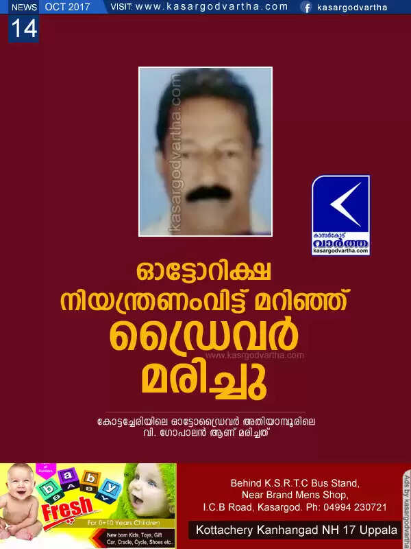 Keywords: Kasaragod, Kerala, news, Death, Auto-rickshaw, Driver, Auto Driver dies in accident