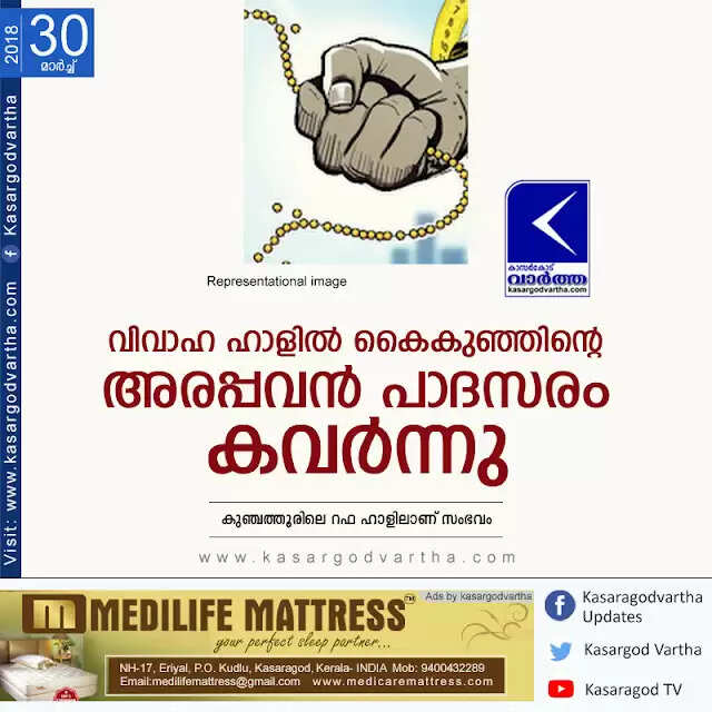 Keywords: Manjeshwaram, Kasaragod, Kerala, News, gold, Robbery, Police, Complaint, Baby's gold robbed from hall.