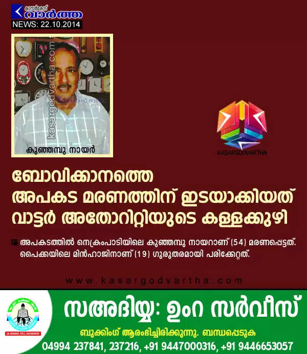 Keywords: Water authority, Bovikanam, Accident, Death, Obituary, Hospital, Kasaragod, Kerala, Student, Injured.