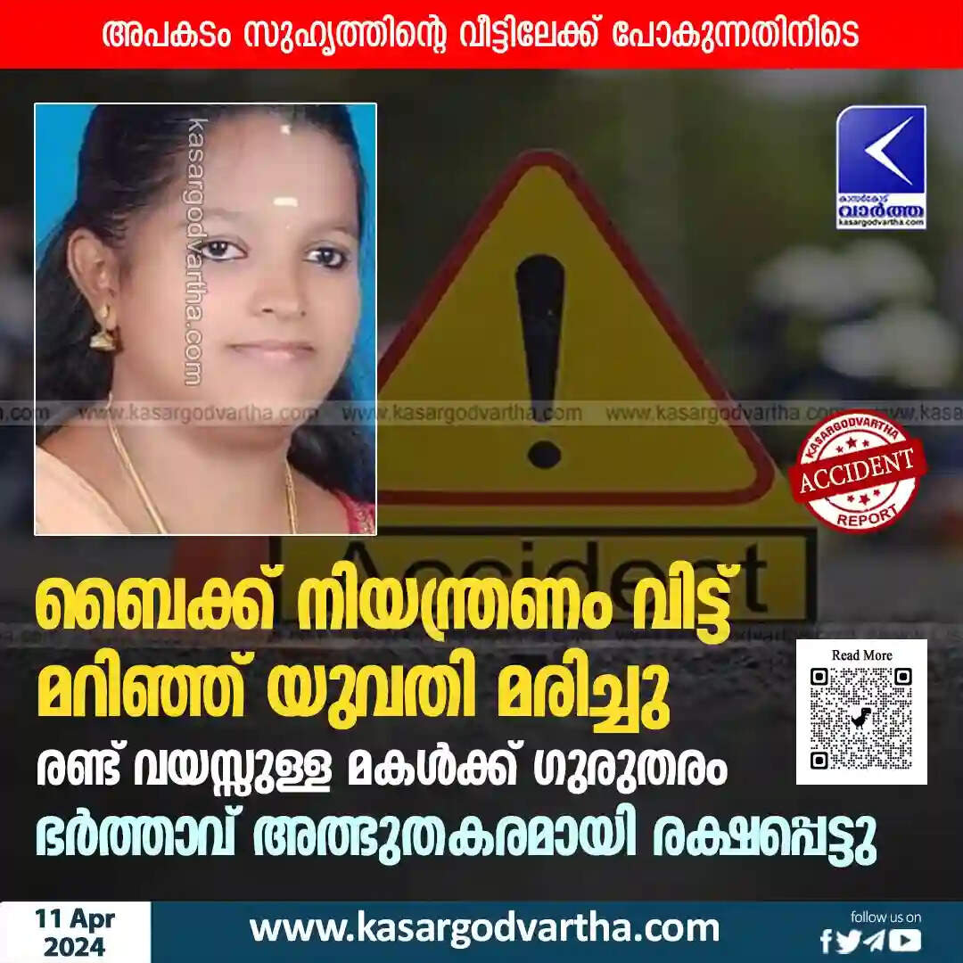 Accidental Death | ഇരുചക്രവാഹനം നിയന്ത്രണംവിട്ട് മറിഞ്ഞ് യുവതി മരിച്ചു; 2 വയസുള്ള മകള്ക്ക് ഗുരുതരം; ഭര്ത്താവ് അത്ഭുതകരമായി രക്ഷപ്പെട്ടു