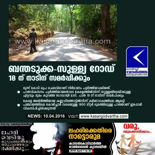 ബന്തടുക്ക - സുള്ള്യ റോഡ് 18 ന് നാടിന് സമര്പ്പിക്കും