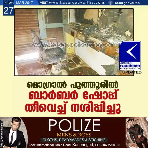 മൊഗ്രാല്‍ പുത്തൂരില്‍ ബാര്‍ബര്‍ ഷോപ്പ് തീവെച്ച് നശിപ്പിച്ചു