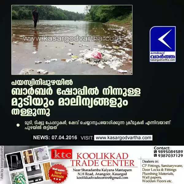 പയസ്വിനിപ്പുഴയില്‍ ബാര്‍ബര്‍ ഷോപ്പില്‍ നിന്നുള്ള മുടിയും മാലിന്യങ്ങളും തള്ളുന്നു