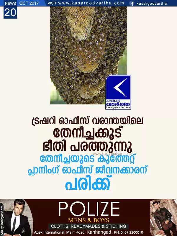 Keywords: News,Kasaragod, Vidya Nagar, Hospital, Civil station, Treasury, Office, Building, Bee attack in Treasury office