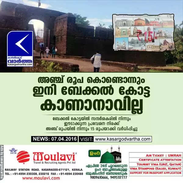 അഞ്ച് രൂപ കൊണ്ടൊന്നും ഇനി ബേക്കല് കോട്ട കാണാനാവില്ല