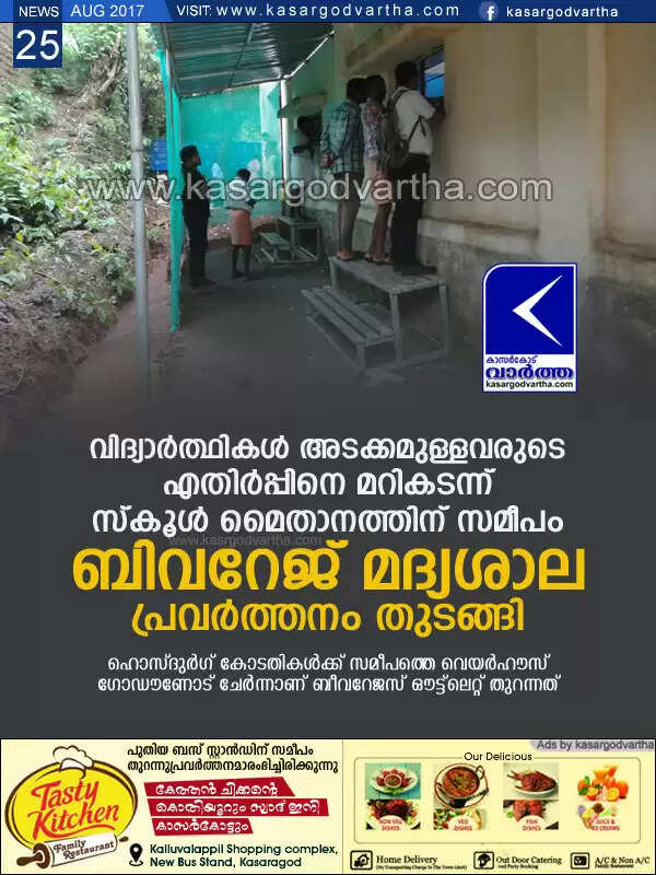 വിദ്യാര്‍ത്ഥികള്‍ അടക്കമുള്ളവരുടെ എതിര്‍പ്പിനെ മറികടന്ന് സ്‌കൂള്‍ മൈതാനത്തിന് സമീപം ബിവറേജ് മദ്യശാല പ്രവര്‍ത്തനം തുടങ്ങി