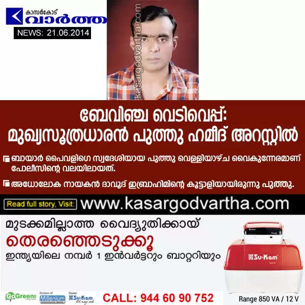 ബേവിഞ്ച വെടിവെപ്പ്: മുഖ്യസൂത്രധാരന്‍ പുത്തു ഹമീദ് അറസ്റ്റില്‍