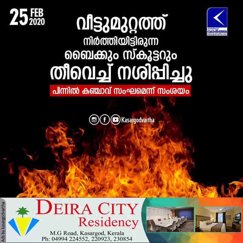 Keywords: Manjeshwaram, kasaragod, Kerala, news, Bike, Scooter, Bike and scooter set fire in Manjeshwaram   < !- START disable copy paste -->