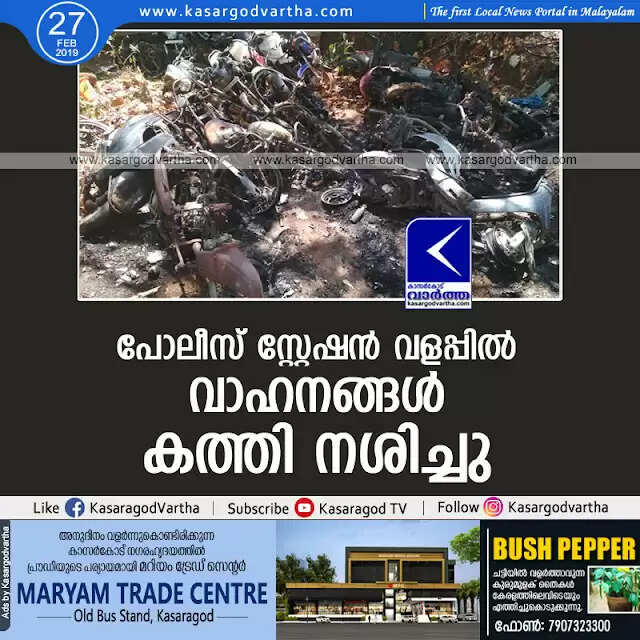 Keywords: Kasaragod, Kerala, news, Bekal, Vehicle, fire, Bike parked in Police station burned