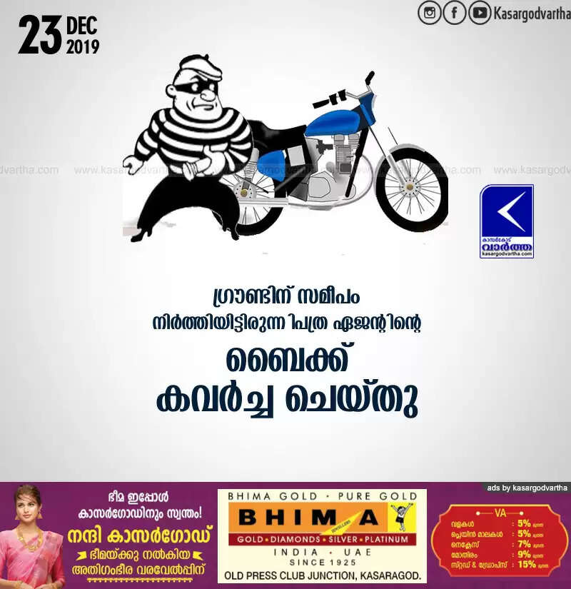 ഗ്രൗണ്ടിന് സമീപം നിര്‍ത്തിയിട്ടിരുന്ന പത്ര ഏജന്റിന്റെ ബൈക്ക് കവര്‍ച്ച ചെയ്തു