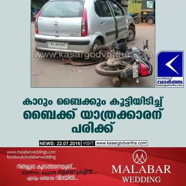 കാറും ബൈക്കും കൂട്ടിയിടിച്ച് ബൈക്ക് യാത്രക്കാരന് പരിക്ക്
